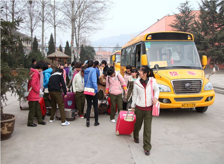 3月10日上午,陕西三和学院校门口两行列队的学生、老师们焦急的等待着,一辆接着一辆的校车缓缓的驶入校园,学生们顿时欢声雀跃起来。