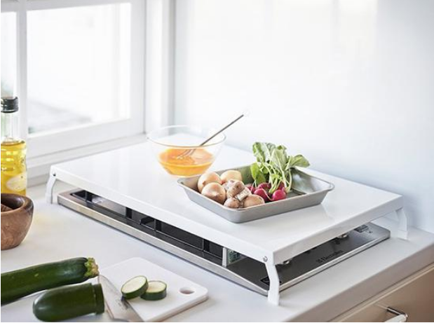 山崎实业公司日前推出了可安装在燃气灶上,作为工作台和收纳空间使用的1口用盖“折叠燃气灶盖塔”和2 ~ 3口用“折叠燃气灶盖塔宽体”。价格依次为2,200日元、3,300日元(含税)。可以在乐天市场和亚马逊上购买。
