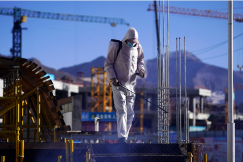 3月15日,拉萨贡嘎国际机场航站区改扩建工程迎来全面复工,工地在做好疫情防控的同时,有序组织工人复工建设。