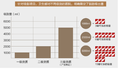 广东韩妃医疗美容医院靠谱吗?广东韩妃是业内少有的具备三级手术操作高资质的医院,三级手术资质到底有多厉害?我们以吸脂项目为例说明。其实,吸脂效果和医院的资质密切相关。医疗美容医院有等级之分,2009年,我国卫生部办公厅颁布《医疗美容项目分级管理目录》,将医院分为一级、二级、三级医院标准,并对整形美容医院开展的手术细分为一级、二级、三级、四级手术资质。