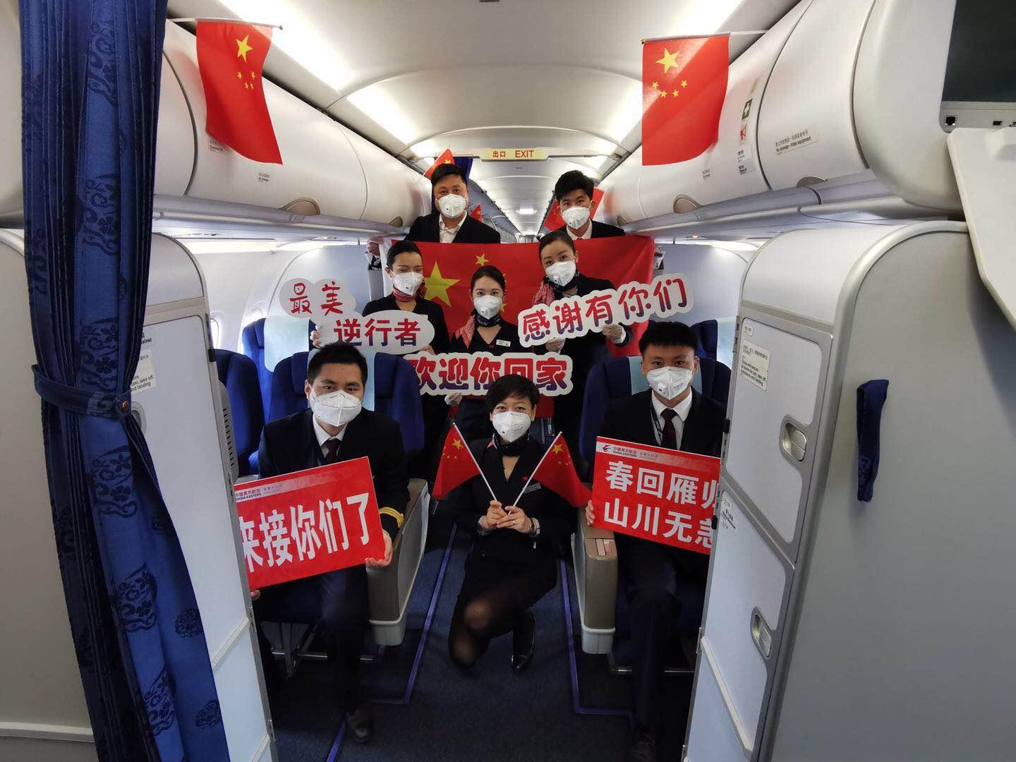 东航安徽分公司工作人员高举“最美逆行者、感谢有你们”的牌子护送医护人员回家,并为医疗队特制温馨登机牌。