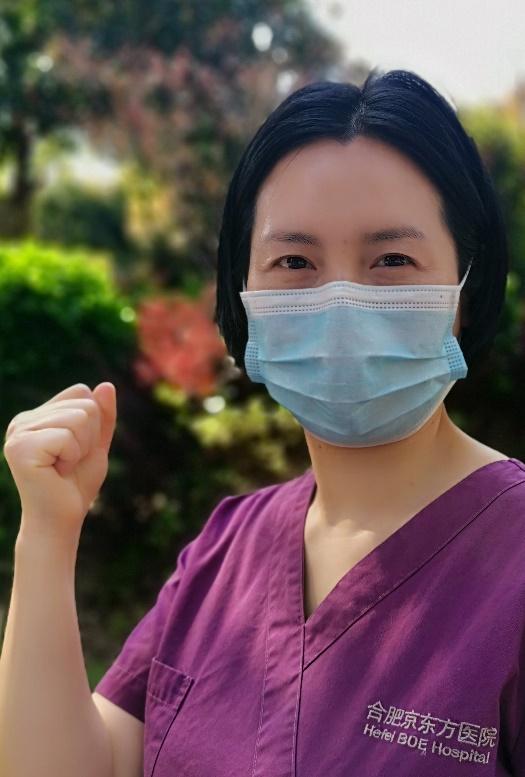 工作虽有风险,每次都是湿透的衣服,变形的脸,但强大的祖国给予我们充足的防护物资,医院给我们坚强的后盾,武汉人民给我们生活照顾,都让我感觉此生不枉此行,感谢祖国,感谢京东方,感谢热情的武汉人民。