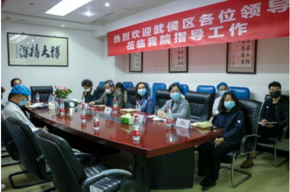 2020年4月2日上午,成都市武侯区人大常委会副主任钟鸣、区人大人代工委李晓慧、区卫健局欧阳宇副局长、区行政审批局彭静书记、红牌楼街道办事处利晨利书记等一行7人莅临成都博大泌尿外科医院调研。