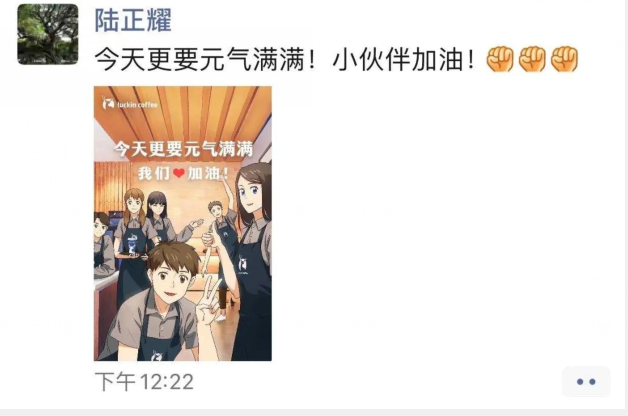 对于股价暴跌,身为瑞幸咖啡创始人、神州系老板的陆正耀则表现得非常“淡定”,仅在朋友圈发了一张瑞幸咖啡的海报,并附言“今天更要元气满满!小伙伴加油!”算是回应。