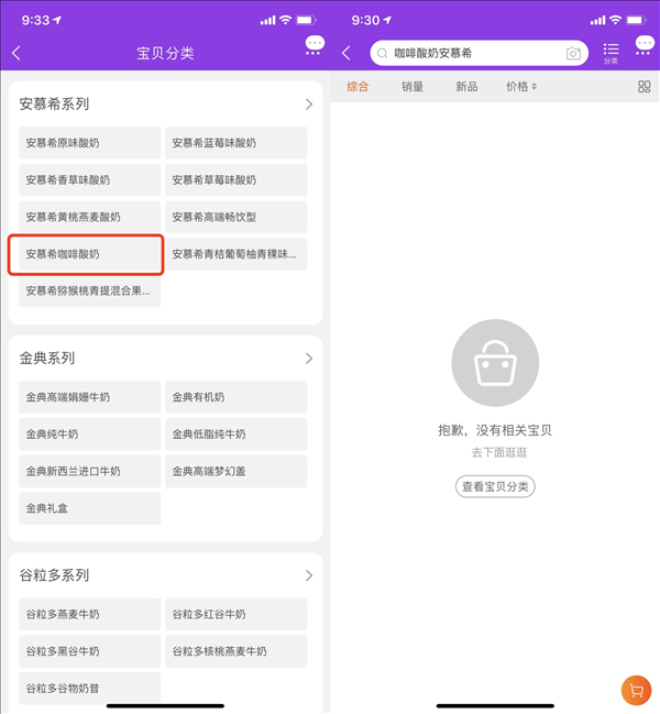在2019年12月,伊利安慕希联合瑞幸咖啡推出了咖啡酸奶,目前,在伊利官网直达的天猫旗舰店中,该品类的产品已经无法再找到。