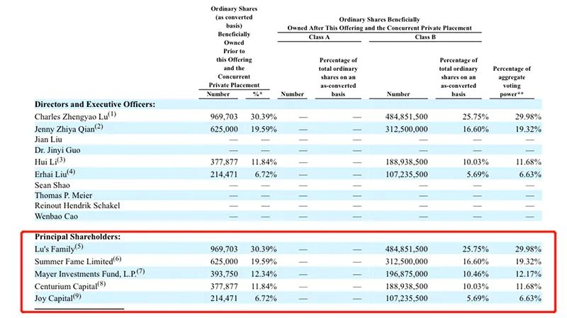 据瑞幸咖啡2019年5月份披露的招股书,彼时陆正耀家族持有普通股比例为30.39%;瑞幸咖啡CEO钱治亚家族信托控制下的Summer Fame Limited实益持股比例为19.59%;大钲资本和愉悦资本分别持股11.84%、6.72%。