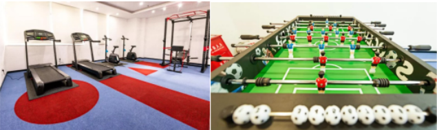 燃烧能量是保持头脑清醒的最好方法,放松的状态中更容易迸发灵感。为让小伙伴们在充实的工作之余能劳逸结合,特别增设健身房区域,并配备跑步机、脚踏机、多功能龙门架、桌上足球等设施,满足不同小伙伴的健身需求。同时,在这里健身还可以看到窗外的都市美景。