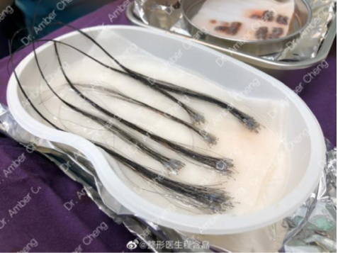 长发植发取出来的毛囊单位,理论上可以保留其原始长度,但考虑到毛发清理的效果以及移植的效率,我们通常会把取下来的毛发长度控制在10-15cm左右。即便是这个长度的毛发,已经能达到一个非常好的术后即刻效果。