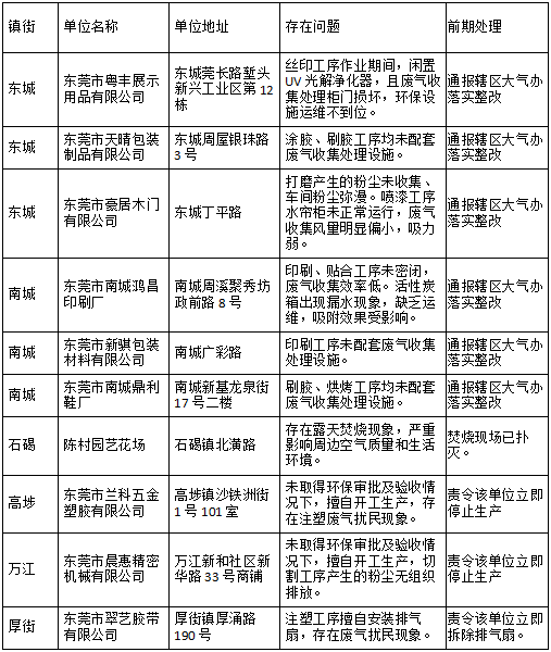 东莞市大气办通报最新一批问题企业名单及工地
