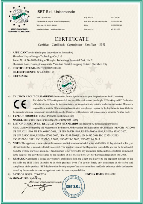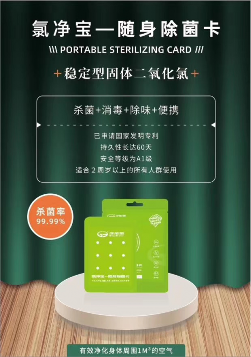 绿能量除菌卡(氯净宝)已通过欧盟“CE”安全认证,其主要成份是二氧化氯,是迄今为止领先的安全杀菌消毒品,能有效的抑制并消除细菌、病毒等。根据WHO的认定,它没有致癌、致畸性,属A1级杀菌品,它通过与空气接触会产生气体,释放出的气体会被吸附在衣服上,能高效地降低周围空气中有害微生物的数量,消解病毒和其他有害物质的活性,只要把它戴在胸前,就相当于为广大师生筑起一道安全的“防护墙”,不管是在食堂、操场、教室等地方,都切断了病毒传播的可能,为学校师生创造了安全、放心的工作和学习环境。