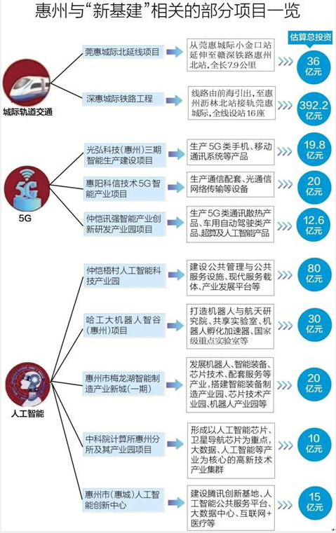 惠州今年计划建设、前期勘察项目共402个、估算总投资9421亿元……近万亿的总投资额,显示出惠州抢跑“新基建”赛道的雄心。