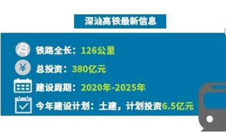 据省发改委公布的《广东省2020年重点建设项目计划表》,深汕高铁被列入今年新开工项目,铁路长126公里,总投资为380亿元。