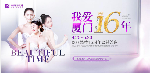 自16年前进驻厦门以来,欧菲便一直秉承着“安全塑美,诚信塑美”的原则,为众多求美者带去美丽和自信。欧菲的品牌实力与求美者的信赖与支持密不可分,值此欧菲16周年之际,厦门欧菲特别推出一系列豪礼,感恩回馈求美者16年的幸福相伴。