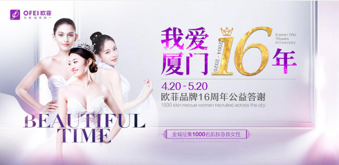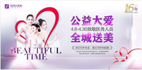 在16周年庆典这样一个激动人心的日子里,厦门欧菲医疗美容医院也不忘积极投身公益事业,为了能够帮助到那些因厚重的防护服和长时间佩戴口罩而导致肌肤受损的医护人员,欧菲联合品牌厂家举办了“公益大爱,全城送美”公益活动,截止到4月30号,所有援鄂天使或者在厦门的医护人员均可免费体验面部除皱、祛黑美白等六大美容项目!用心守候最美逆行者,用爱温暖我们的英雄,致敬最美逆行者,欧菲在行动!