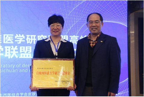 在2019年"第二届皮肤病精准医学研究联盟高峰论坛"上,昆明白癜风皮肤病医院(护国路2号)受邀加盟皮肤病学教育部重点实验室"白癜风精准医学研究联盟单位"并颁发了授权铜牌。