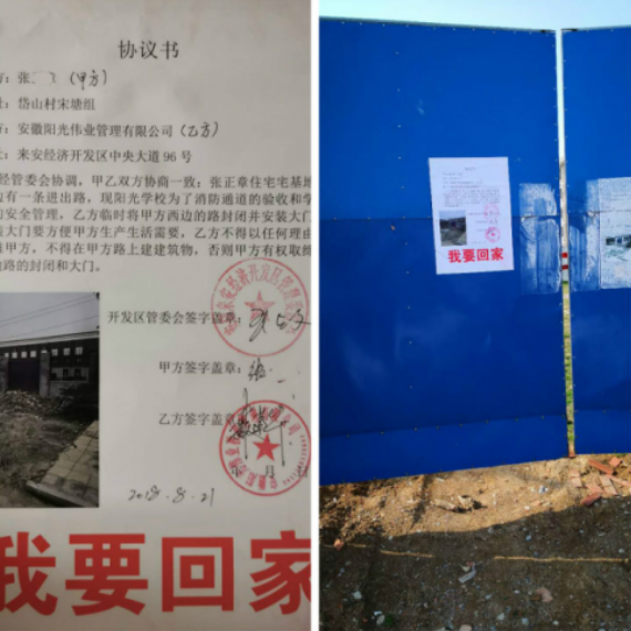 让张某某没想到的是,上述协议成“一纸空文”,这一段通道一封就是两年。两年期间,张某某家中三口人因此回不了家,他们前后多次报警求助、多方反映却沟通无果,阳光学校从始至终一直是一副霸凌无礼的面孔。在走投无路的情况下,张某某全家致电打市长热线,学校被迫于2020年3月27日将门打开。