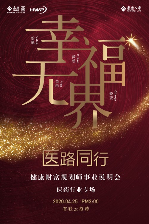 把握趋势,才能赢得未来。泰康人寿将持续招募医药行业贤才,共创大健康事业。健康财富规划师这一新兴职业将更加走向体系化、专业化、职业化,成为跨金融和健康行业的顶级职业标杆。