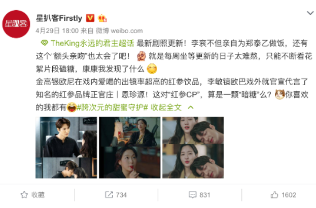 除了剧情内,剧外也有许多彩蛋。比如李敏镐骑着白马的画面,让人梦回《继承者们》中的那句“金叹(李敏镐 饰)难道是白马王子吗?”还有博主发现,女主特别爱喝一根红色条形饮品。老剧迷们一看就懂了,那是韩国正官庄旗下的明星产品。正官庄有个兄弟品牌——正官庄丨恩珍源,传承了老大哥正官庄的制作工艺,推出同样出色的红参饮品系列。而我们的长腿欧巴李敏镐,恰好是正官庄丨恩珍源的全新品牌代言人!这小彩蛋居然还对应上了欧巴的剧外新动作,妙,太妙了!