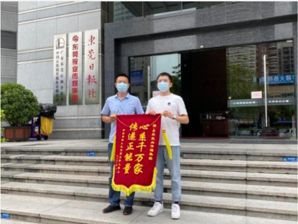 外卖员给东莞报业传媒集团送锦旗表感谢