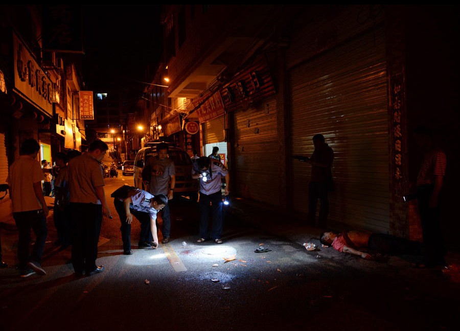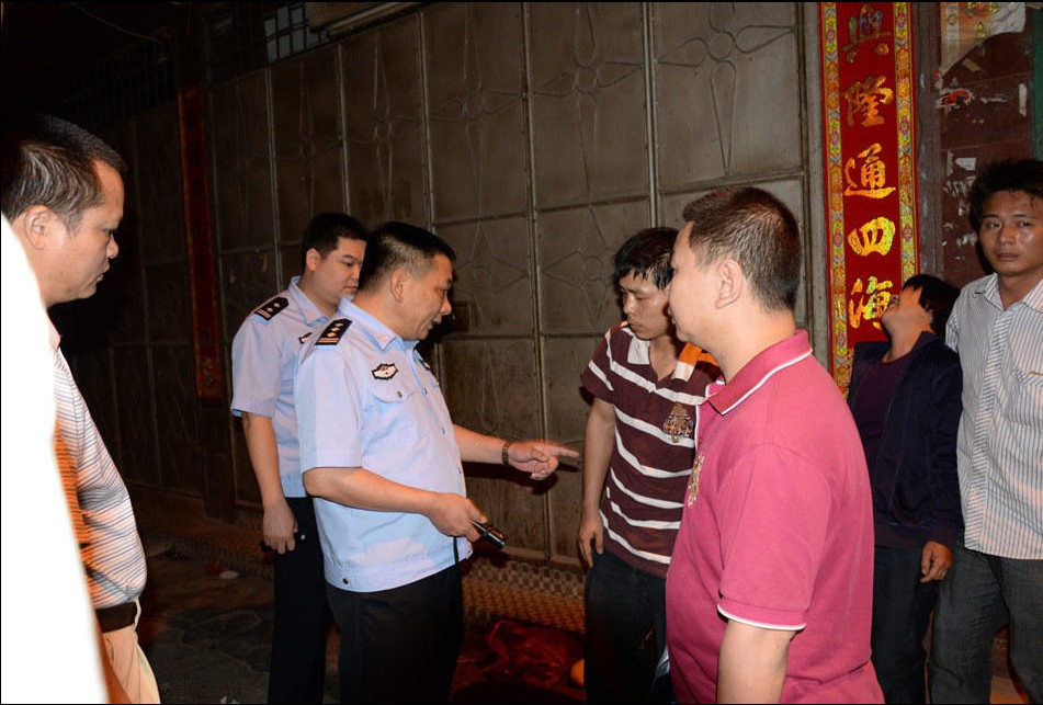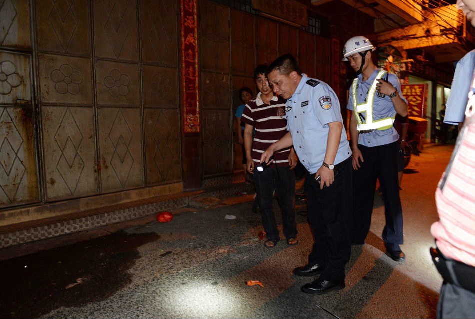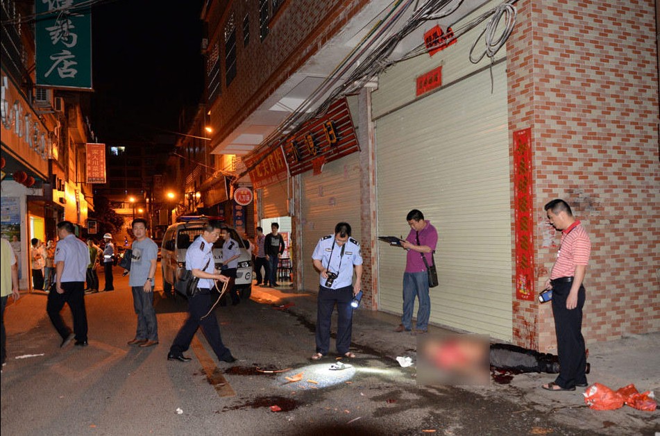 广东省河源市源城区卫星路命案现场(组图) 2014-04-24 10:23:38 莞讯网 4月18日凌晨20分许,河源市源城公安分局接110转来警情,称在源城区卫星路附近发生一宗命案。办案民警迅速赶往现场,发现一男子已倒在血泊中,当场死亡。 上一篇:杀人犯被警方围捕 从7楼高公寓跳下(图) 下一篇:“十三五”将加大“资源环境”“生态建设”力度 返回首页