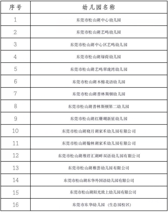 根据省、市公布的2020年春季学期第四批学生返校时间安排,经松山湖学校开学专项工作组验收和审核,并向市学校开学专项工作组报备,同意松山湖中心幼儿园、松山湖艺鸣幼儿园等16所幼儿园,于2020年6月8日起分批安排幼儿返园。
