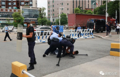 一名“歹徒”手持凶器,欲强行进入石龙二中校园,被校园安保人员拦住,而后被闻讯赶来的民警成功制服……近日,石龙镇教育系统校园安全防范工作会议的反暴演练现场,上演了这“惊险”一幕。