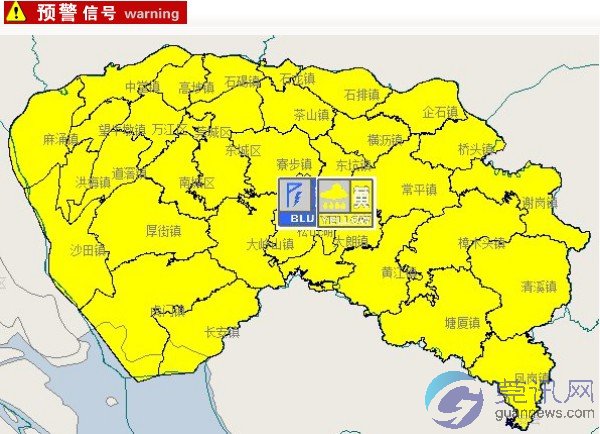 东莞天气:气象台发布暴雨黄色与蓝色预警信号