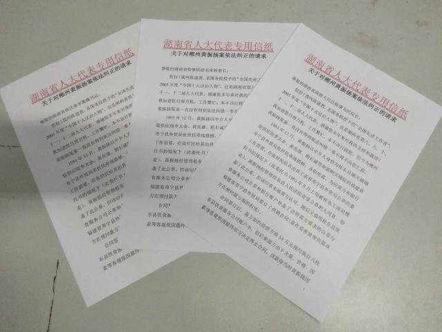 他在2013至2015年期间,先后三次给湖南省检察院、湖南省高院、省委政法委最高领导写信,希望“黄振扬”案能引起高层重视,启动重审程序,还原事实真相。