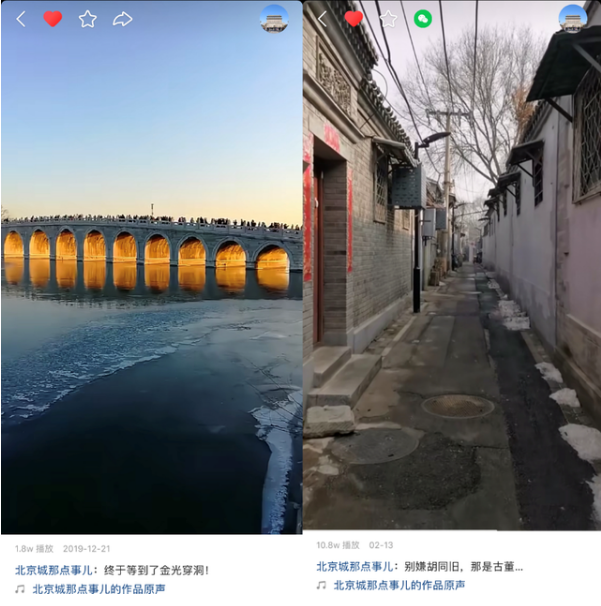 在一众热闹喧嚣的打卡式游览视频中,快手账号“北京城那点事儿”(ID:1388102264)凭着严谨的解说、厚重的文化底蕴和高质量的画面和剪辑脱颖而出。