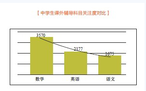 在对百度搜索数据的分析中我们发现:在刚刚过去的2013年,对比中学教育的语数外三大学科,数学学科的检索量最大,成为最热门学科,其次是英语。