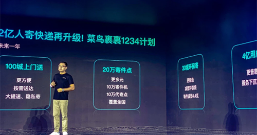 9月20日,在菜鸟裹裹2020发布会上,菜鸟裹裹CEO李江华宣布“1234战略”:未来一年,100城寄快递可按需送达上门,20万寄件点将覆盖全国,30城上线环保袋,服务4亿用户。
