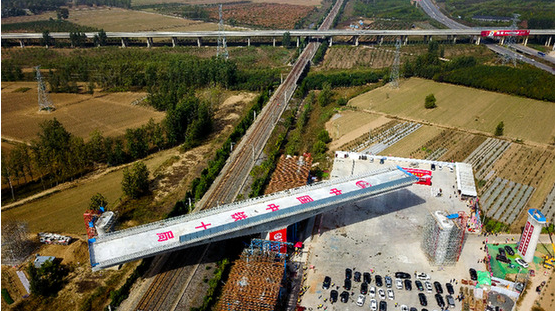 鲁南高铁菏兰段上跨京九铁路连续梁成功转体
