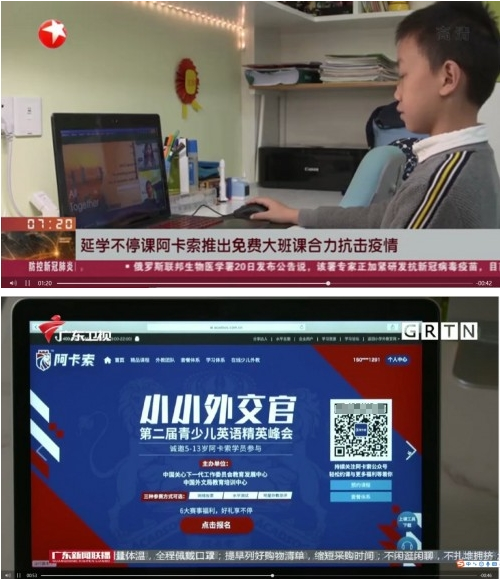 在4月初,阿卡索也相继获得了广东卫视与东方卫视的报道,因为在今年疫情爆发期间,阿卡索持续为全国中小学生赠送了上万节在线英语课程,用专业的力量助力学生“停课不停学”,让居家的学生也能安心完成学习。