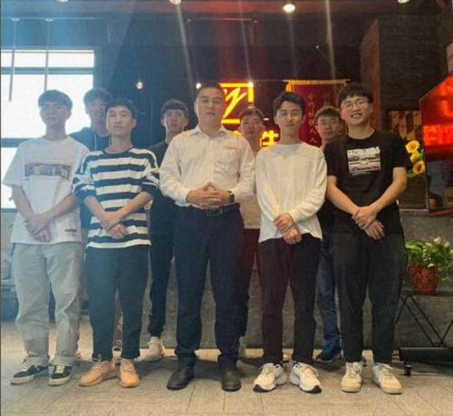 超悦“优才培养计划启动会”上,陈翱(左3)与实习生在一起