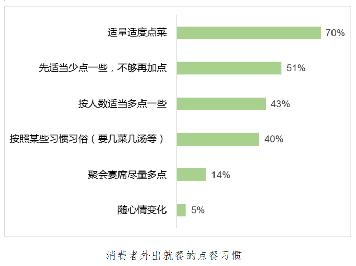 报告显示,近7成的餐饮经营单位未在餐牌上标明菜品分量、口味等信息;七成餐厅服务员未能主动提醒顾客合理点餐、85%的服务员未能主动对剩菜分餐、75%的服务员未能主动询问打包。
