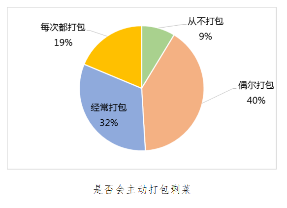 报告显示,4成多消费者点菜时会多点,约3成消费者对餐饮浪费持无所谓态度,近1成消费者从不对剩菜打包。这也说明部分消费者节约意识仍然不足。