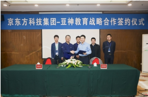 11月9日,京东方与豆神教育在北京签订战略合作协议,京东方执行副总裁、京东方艺云科技董事长姚项军,豆神教育董事长池燕明等出席签约仪式。双方将结合各自资源与优势,共同打造软硬融合的智慧终端和教育解决方案,开拓教育行业市场,通过长期全方位合作实现共赢。