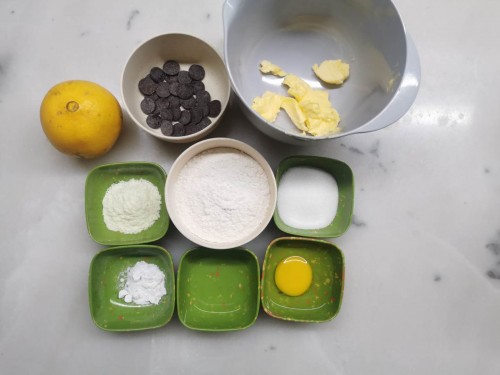 在饼干的烘烤过程中,将巧克力放入小碗中隔热水融化。饼干出炉后晾凉,抹上融化好的巧克力,可以在巧克力上撒柠檬屑作为装饰便完成了。