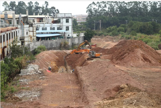 在金满湖地块西区排水渠工程、金满湖地块坑口水库排洪渠改道工程、东莞粤海银瓶合作创新区排水系统改造项目等水利工程施工现场,工人们也正在紧张有序地施工,多台挖掘机和大型设备同时作业,一派热火朝天的忙碌景象,各项工程都在有序进行中。