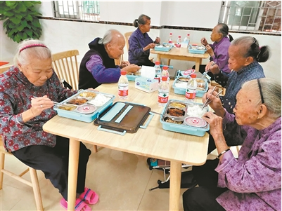 今年以来,大岭山镇把推行居家养老“大配餐”、建设长者饭堂列为重大民生实事来抓,让每一位有需求的居家养老服务政府兜底资助对象都能享受到助餐配餐服务。长者可以选择到长者饭堂用餐,也可以选择足不出户,在家享受营养午餐。(来源:广州日报)