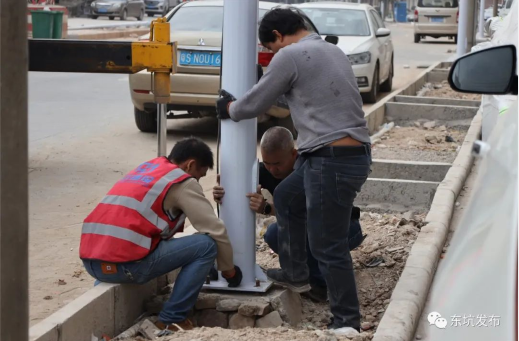 角社这条断头路长度是300米,两边车道是18米宽的车道,目前路面已经做完了,剩下两边路沿石、装路灯、两边人行道,还有铺设广场砖,我们加班加点进行,争取今年12月份底完工。