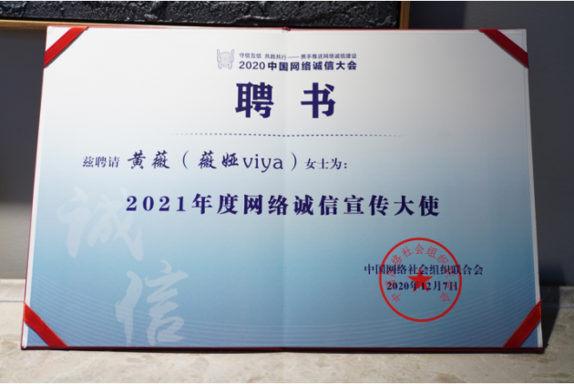 2020中国网络诚信大会召开 薇娅获聘2021年度网络诚信宣传大使
