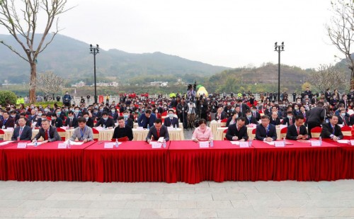 原省政协副主席、省老年大学协会会长温兰子,梅州市委书记陈敏,市长张爱军,国际自然医学会副会长王智墨博士,翼天文旅集团董事长刘汉军,省委统战部副部长、省工商联党组书记雷彪,省卫生健康委副主任张玉润,市政协主席陈建青,省市场监管局党组成员、副局长丘瑞清,梅州鼎盛翼天文旅产业投资有限公司总裁梅洪,市政府副市长、梅县区委书记吴泽桐,省文旅厅艺术处处长唐国华共同为翼天·客都人家康养文旅综合体揭幕。