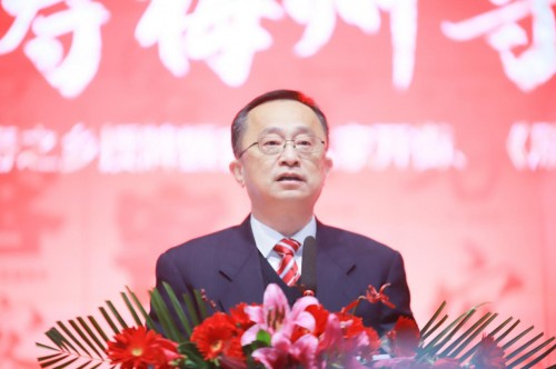 梅州市委书记、市人大常委会主任陈敏上台致辞,他用四句话表达内心的喜悦。