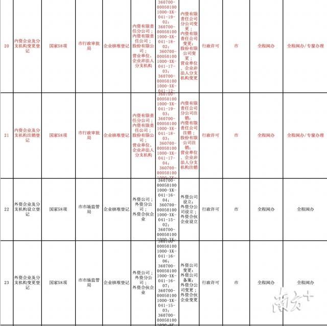 东莞、赣州两地以大数据赋能,通过线下代办、线上流转一体化联动,让两地企业和民众实现跨省办、就近办、身边办。两地的“跨省通办”推进工作,按照成熟一批部署一批的原则。首批可在东莞办理的赣州事项共26个,包括个人住房公积金缴存贷款等信息查询,离、退休提取公积金,内、外资企业及分支机构设立、变更等事项。首批可在赣州办理的东莞事项共50个,包括内、外资有限责任公司的设立、变更、注销,企业迁移,食品生产许可证变更,计划生育津贴申领等事项。
