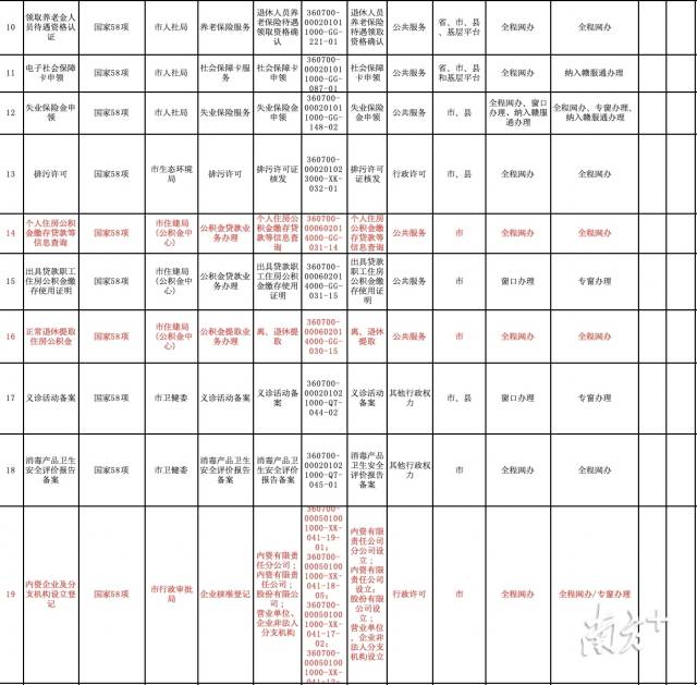 附:赣州市第一批政务服务“跨省通办”事项清单