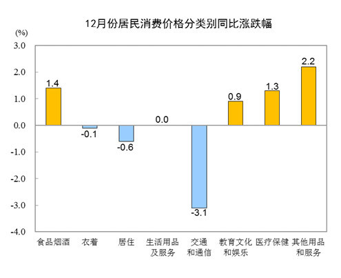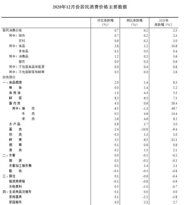 2020年12月份CPI同比由降转涨 PPI同比降幅收窄