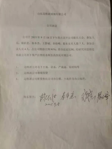 当日下午,迈格派再次召开董事会,会议决议将迈格派名下资产出售给东阿东昌焦化有限公司。