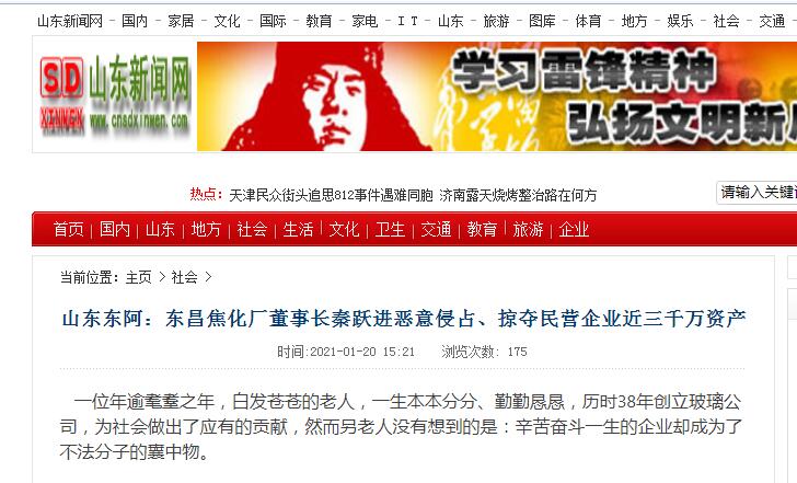 山东东阿:东昌焦化厂董事长秦跃进恶意侵占、掠夺民营企业近三千万资产
