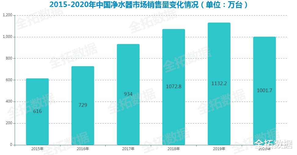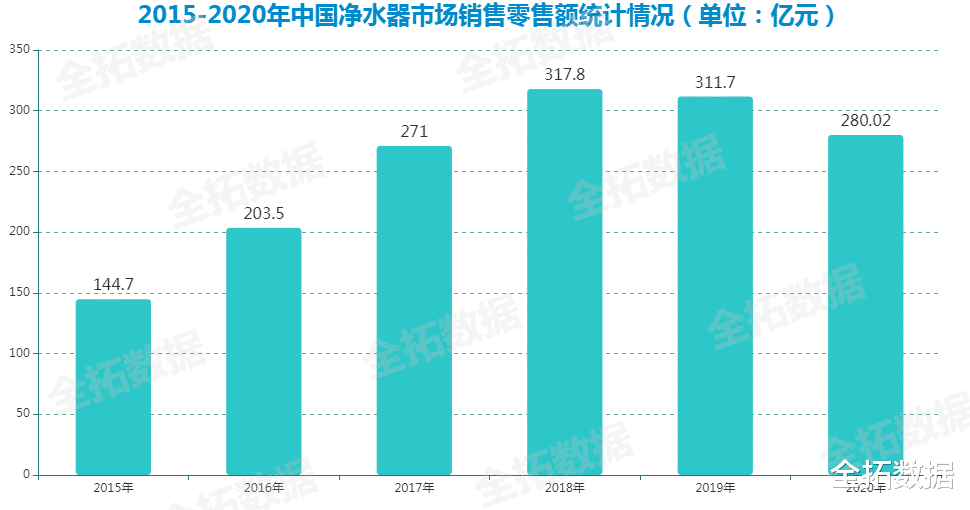 随着居民生活水平和健康意识的提高,当下居民越来越关注水污染问题。因此,净水器在过去几年开启了高速增长的通道,整个净水器市场在短短7年就扩容了10倍,市面上销售净水器的品牌也超过了300家。同时,净水器的市场竞争白热化,但自2018年开始,净水器行业已经连续两年出现了增速减缓,行业进入疲态期。2019年,净水器市场迎来了发展中的“拐点”,2019年,中国净水器市场的整体规模下降了1.9%,进入2020年以来,净水器市场再次出现下跌,当然这很大部分原因是受疫情影响。